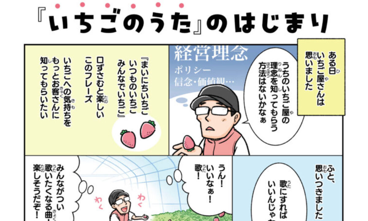 お知らせ 「まんがで分かるいちごのうた」を公開しました Admin 2025年10月14日 / 2025年11月19日 「まんがで分かるいちごのうた」を公開しました。 まんがは、イラストレーターのさのかさんに描いていただきました。 ↓ 「まんがで分かるいちごのうた」