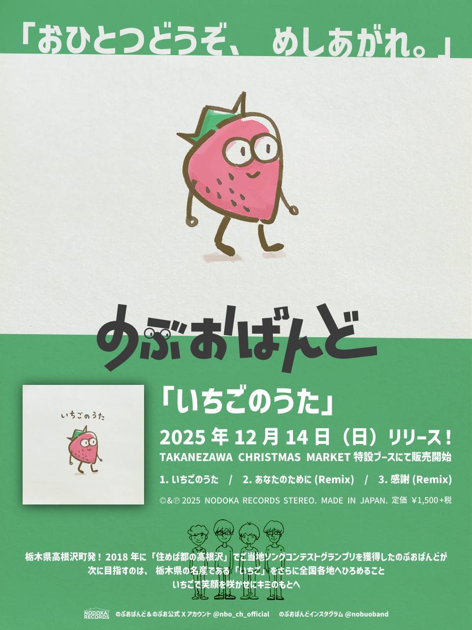 のぶおばんど「いちごのうた」2025年12月14(日)CDリリース決定!